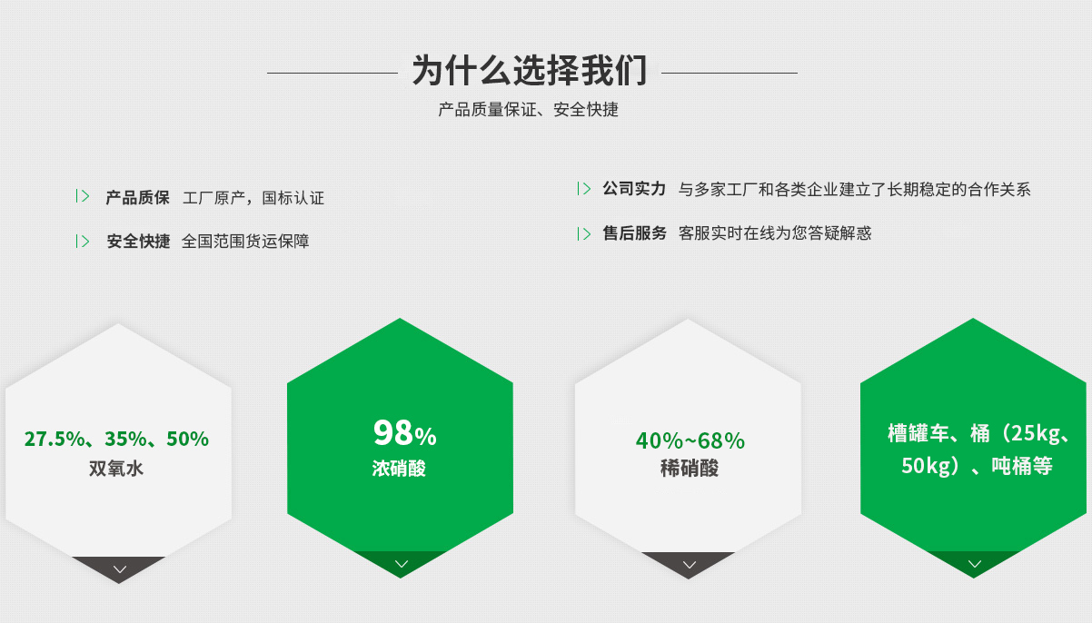 - 安徽安德諾化工產(chǎn)品銷(xiāo)售有限公司:位于合肥市蜀山區(qū),交通便利,主要經(jīng)營(yíng)雙氧水(27.5%、35%、50%)、濃硝酸(98%)、稀硝酸(40%~68%)等化工產(chǎn)品,與多家工廠(chǎng)和各類(lèi)企業(yè)建立了長(zhǎng)期穩(wěn)定的合作關(guān)系。公司產(chǎn)品齊全,實(shí)力雄厚,重信用、守...